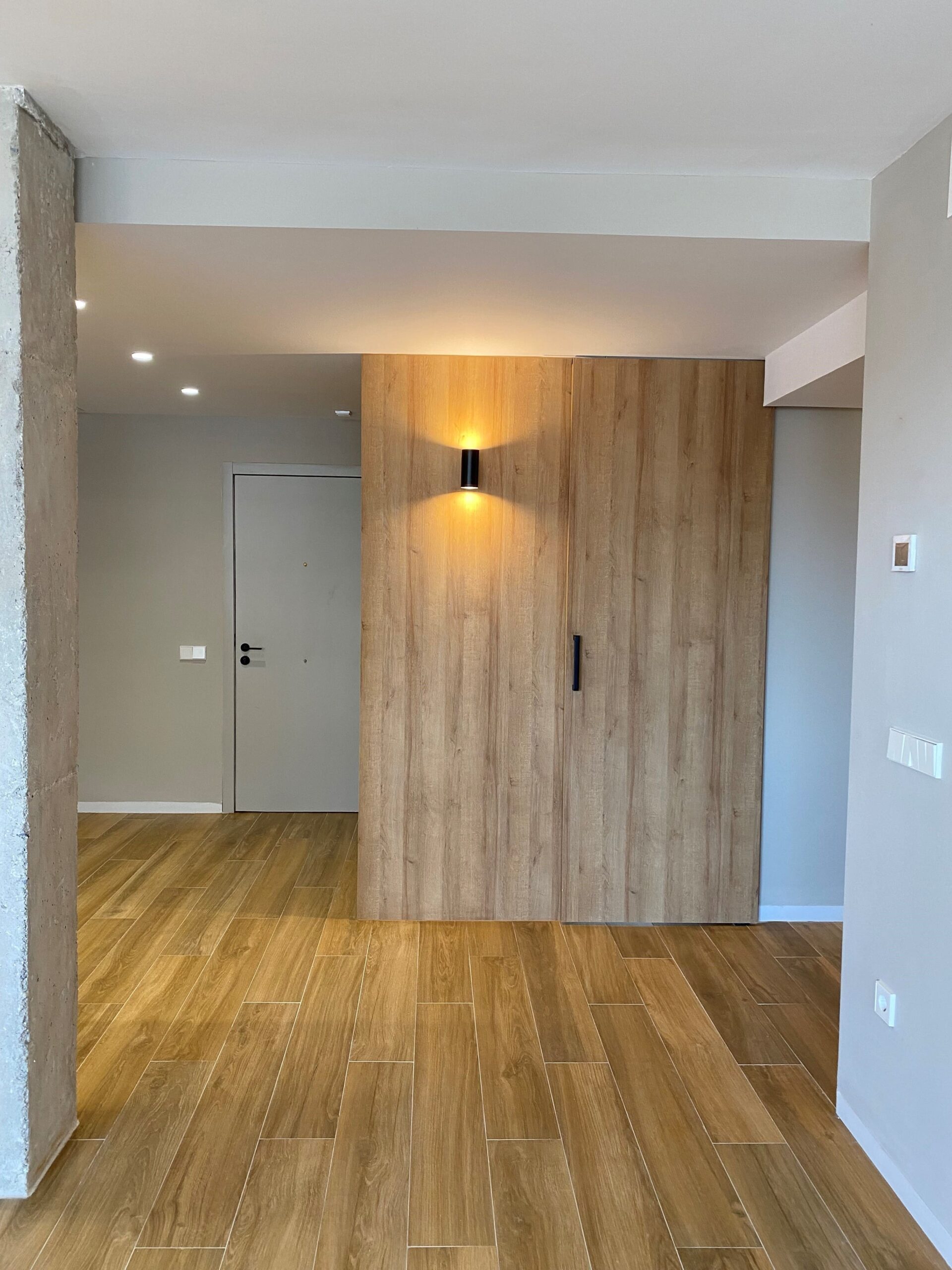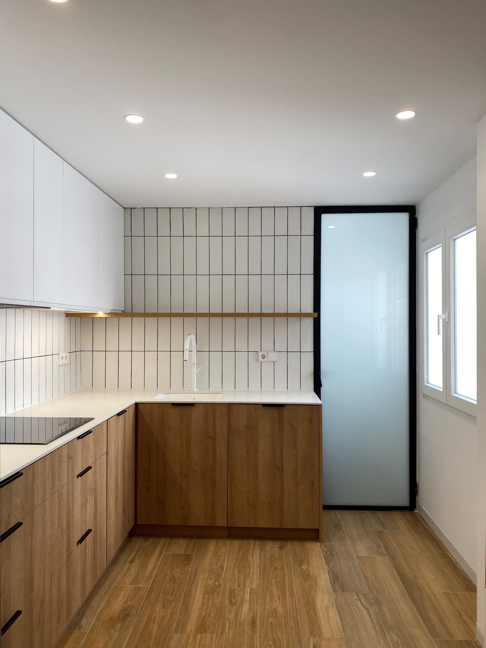Este piso recientemente reformado ofrece una combinación perfecta de elegancia natural y funcionalidad moderna. El suelo de madera natural recorre toda la vivienda, aportando calidez, continuidad y una sensación acogedora desde el primer paso. Los armarios empotrados a medida, también en madera, combinan a la perfección con el estilo del piso, ofreciendo amplios espacios de almacenamiento con una estética limpia y cuidada.